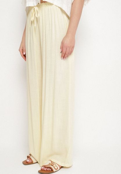Jasnożółte Spodnie z Szerokimi Nogawkami i Gumką w Pasie Helnena