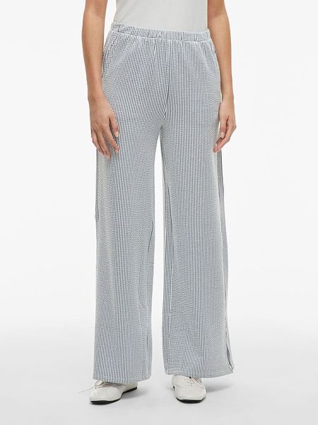 – z dodatkiem poliestru pochodzącego z recyklingu- wysokość pasa: high waist- pas / ściągacz: elastyczny- kieszenie: wpuszczane- zakończenie nogawek: z rozcięciem- krój: luźny- wzór: paski