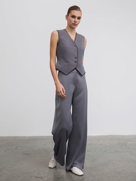 – wysokość pasa: high waist- zapięcie: guzik i suwak- kieszenie: wpuszczane- krój: luźny- look: jednokolorowyUwaga: Przy wyborze właściwego wariantu zaleca się korzystanie z tabeli rozmiarów.