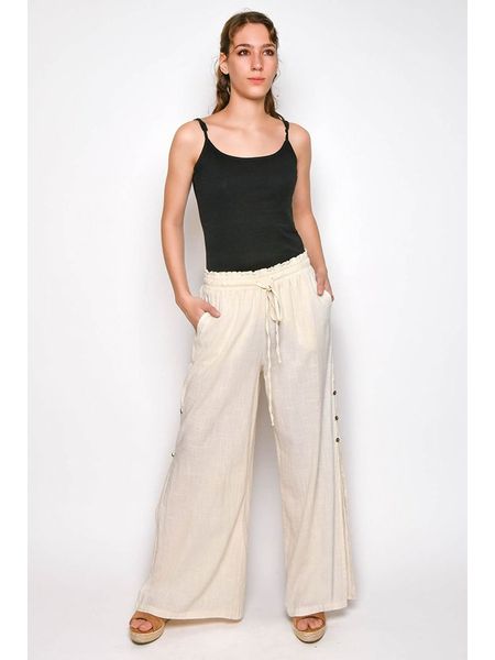 – czysta bawełna- wysokość pasa: regular waist- pas: ściągacz tunelowy- kieszenie: wpuszczane- detale: ozdobne guziki- wzór: melanżowy