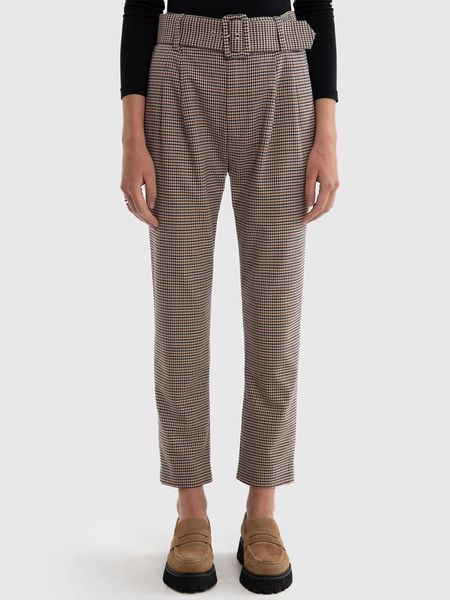 – zapięcie: guzik i suwak- szlufki na pasek: tak- zdejmowany pasek: tkanina- kieszenie: wpuszczane i tylne- krój: prosty- długość nogawki: 7/8- wzór: kratka