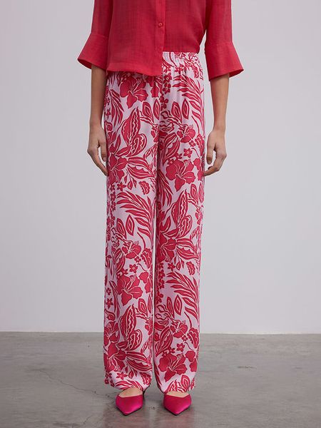 – czysta wiskoza- wysokość pasa: high waist- pas / ściągacz: elastyczny- kieszenie: wpuszczane- krój: luźny- wzór: kwiatowyUwaga: Przy wyborze właściwego wariantu zaleca się korzystanie z tabeli rozmiarów.