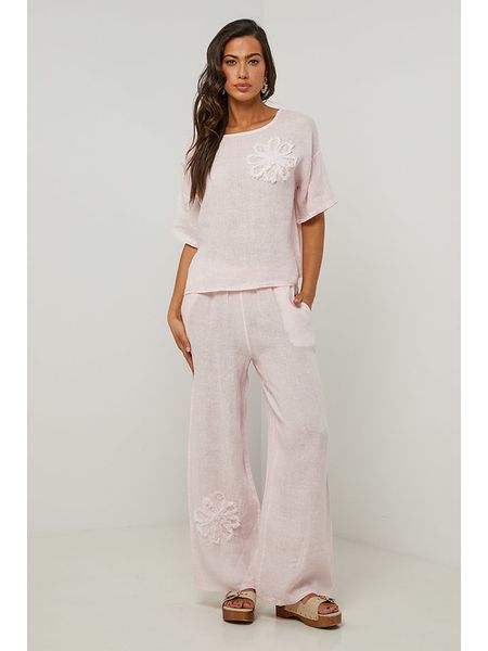 Le Monde du Lin Lniane spodnie w kolorze jasnoróżowym rozmiar: 40/42