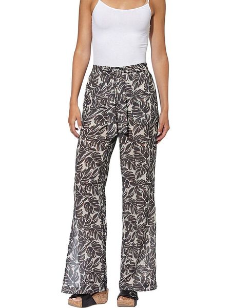 Beżowo-Brązowe Spodnie o Szerokim Kroju z Gumką w Talii w Panterkę Filassena