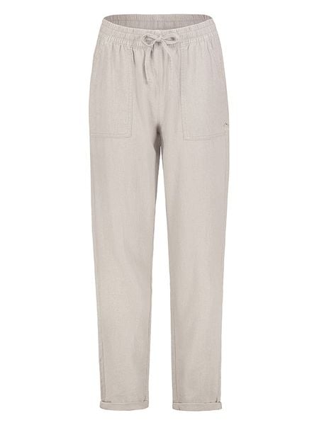 – z dodatkiem lnu- wysokość pasa: high waist- fason: regular fit- krój nogawek: prosty- pas: ściągacz tunelowy- kieszenie: wpuszczane i tylne- look: jednokolorowy