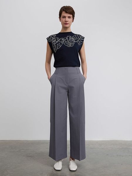 – wysokość pasa: high waist- szlufki na pasek: tak- zapięcie: haczyk i suwak- detale: kant- krój: luźny- look: jednokolorowyUwaga: Przy wyborze właściwego wariantu zaleca się korzystanie z tabeli rozmiarów.