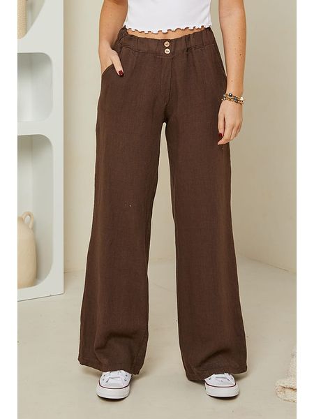 – czysty len- pas / ściągacz: elastyczny- kieszenie: naszyte- krój nogawek: szeroki- krój: prosty- look: jednokolorowy
