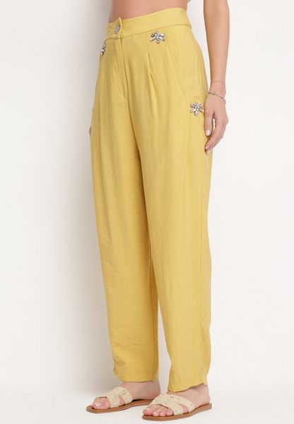 Żółte Spodnie z Wysokim Stanem i Cyrkoniami Uzilina