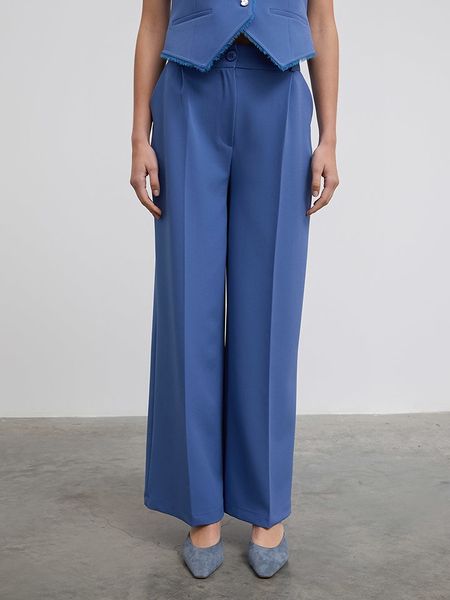 – wysokość pasa: high waist- szlufki na pasek: tak- pas / ściągacz: elastyczny- zapięcie: guzik i suwak- kieszenie: wpuszczane- detale: kant- krój: luźny- look: jednokolorowyUwaga: Przy wyborze właściwego wariantu zaleca się korzystanie z tabeli rozmiarów.