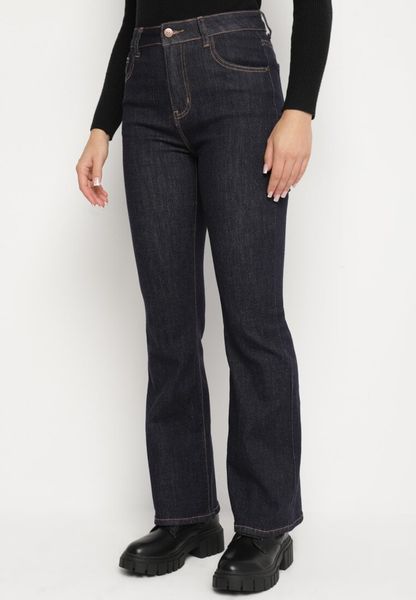 Granatowe Klasyczne Jeansy Dzwony z Wysokim Stanem Salaresa