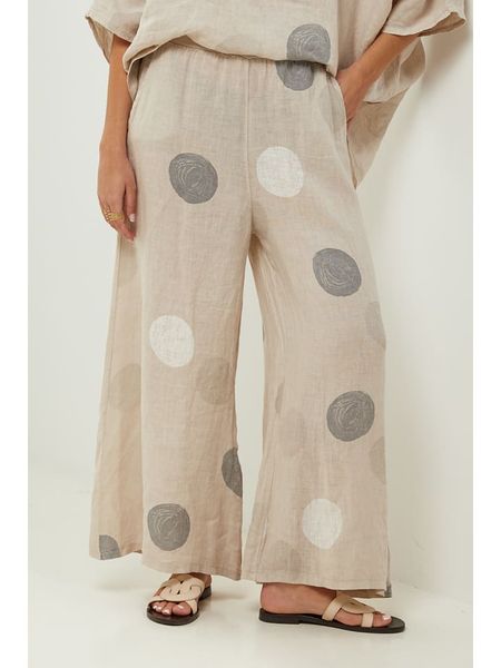 – czysty len- pas / ściągacz: elastyczny- kieszenie: wpuszczane- krój: luźny- wzór: kropkiWskazówka: Na metkach odzieży tej marki znajdują się rozmiary francuskie. Rozmiarówka została przez nas przeliczona. Podane do wyboru warianty rozmiarów odpowiadają standardowym europejskim rozmiarom konfekcji. Prosimy zapoznać się z zamieszczonym objaśnieniem rozmiarów.