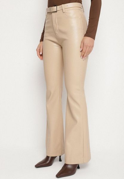 Beżowe Spodnie Dzwony z Imitacji Skóry Vebora