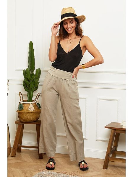 – czysty len- wysokość pasa: high waist- pas / ściągacz: elastyczny- kieszenie: wpuszczane- krój: luźny- look: jednokolorowyUwaga: Na metkach odzieży tej marki znajdują się rozmiary francuskie. Rozmiarówka została przez nas przeliczona. Podane do wyboru warianty rozmiarów odpowiadają standardowym europejskim rozmiarom konfekcji. Prosimy zapoznać się z zamieszczonym objaśnieniem rozmiarów.