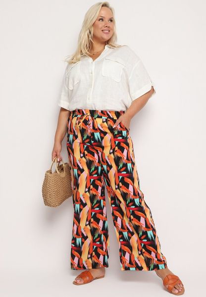 Czarno-Pomarańczowe Szerokie Spodnie Boho z Wysokim Stanem i Gumką w Pasie Letviana
