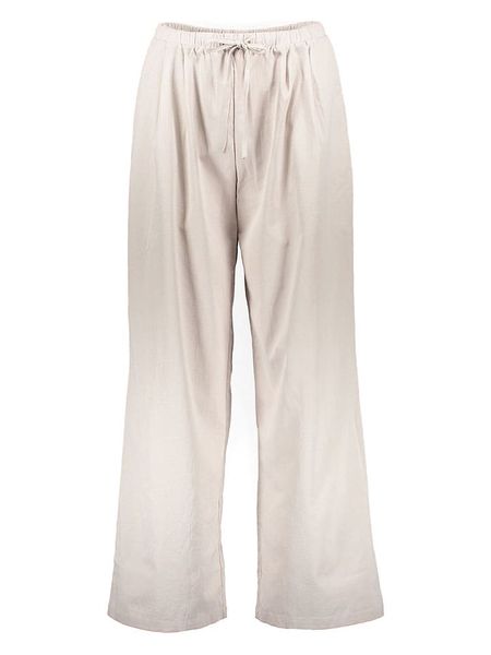Ciemnobeżowe Spodnie ne Spodnie z Szerokimi Nogawkami Palazzo z Gumką w Pasie Nesira