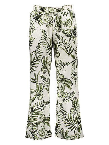Jasnozielone Spodnie z Wiskozy o Szerokim Kroju z Wysokim Stanem w Panterkę Zelmara