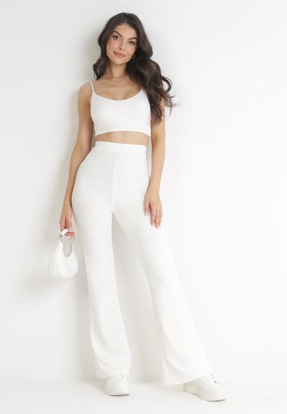 Białe Spodnie Dzwony z Gumką w Pasie Milica