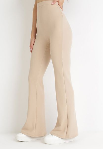 Beżowe Spodnie Dzwony z Gumką w Pasie Milica