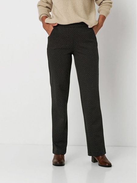 – wysokość pasa: high waist- fason: regular fit- krój nogawek: prosty- pas / ściągacz: elastyczny- kieszenie: wpuszczane- wzór: na całości