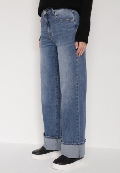 Niebieskie Szerokie Jeansy z Wysokim Stanem i Podwiniętymi Nogawkami Jilora
