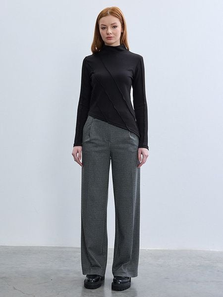– zapięcie: guzik i suwak- szlufki na pasek: tak- kieszenie: wpuszczane i tylne- detale: plisy- zakończenia nogawek: dzwony- krój: prosty- wzór: pepitkaUwaga: Przy wyborze właściwego wariantu zaleca się korzystanie z tabeli rozmiarów.