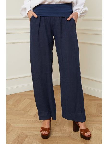 Fleur de Lin Lniane spodnie „Astrid” w kolorze granatowym rozmiar: XXL