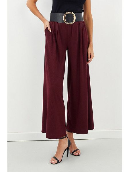Bordowe Spodnie o Dopasowanym Kroju z Gumką w Talii i Kieszeniami Rizenna