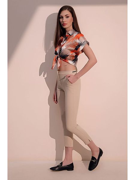 – zapięcie: guzik i suwak- kieszenie: wpuszczane i tylne- długość nogawek: 7/8- krój: wąski- look: jednokolorowy
