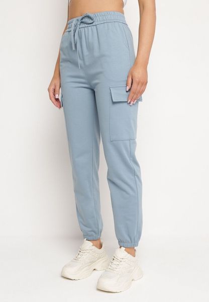 Niebieskie Spodnie Dresowe z Bawełny z Szerokimi Kieszeniami Cargo Marnadala