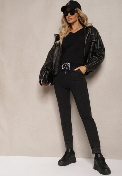 Czarne Spodnie Dresowe Regular z Elastyczną Gumką w Talii i Kieszeniami Ciathria