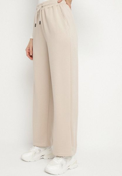 Beżowe Spodnie Dresowe Szerokie z Wiskozą Elaniris