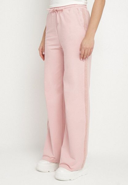 Różowe Szerokie Spodnie Dresowe z Bawełny z Wysokim Stanem i Lampasami Pillione