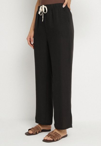 Czarne Spodnie o Szerokim Kroju z Gumką i Wiązaniem w Talii Mirastra