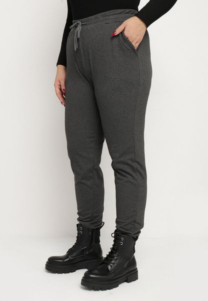 Ciemnoszare Spodnie Dresowe z Bawełną Wiązane Sznurkiem Ocieplane Polarem Florezi