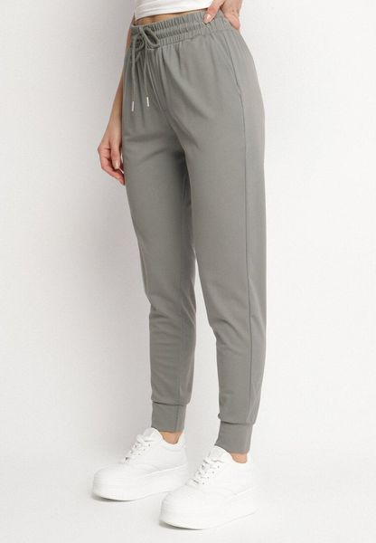 Szare Spodnie Dresowe z Wiskozą Wysokim Stanem i Sznurkiem Ellirina