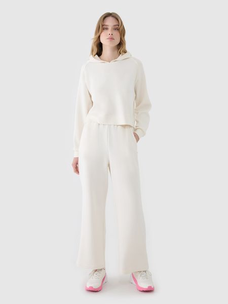 4F Spodnie dresowe z modalem z szerokimi nogawkami damskie – białe XL