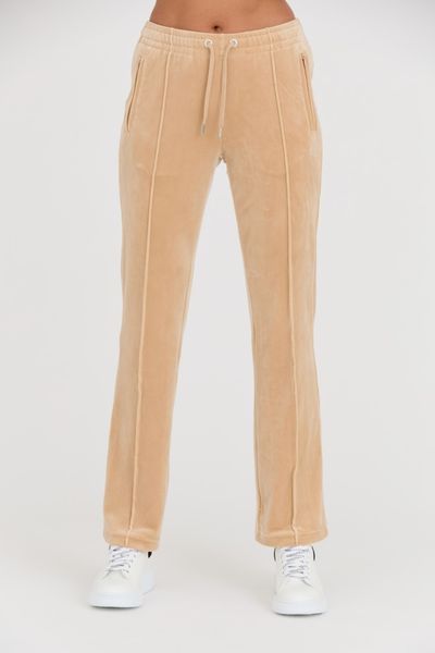 Beżowe damskie spodnie dresowe Tina Track Pants, marki JUICY COUTURE.Wymiary modelki: wzrost 176 cm, biust 85 cm, talia 65 cm, biodra 92 cm. Modelka ma na sobie produkt w rozmiarze S.