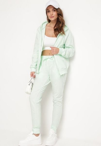 Miętowe Spodnie Dresowe z Gumką w pasie i Troczkiem Halemia