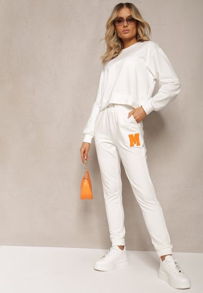Białe Spodnie Dresowe z Naszywką na Nogawce Aralsta
