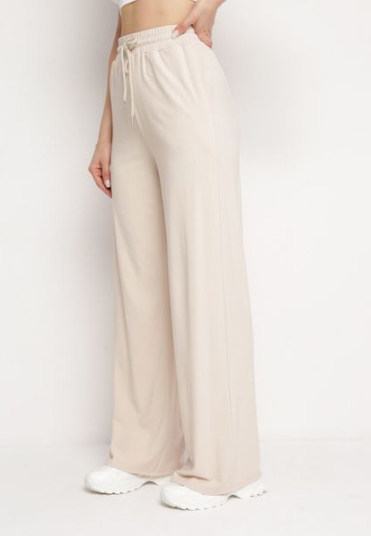 Jasnobeżowe Bawełniane Spodnie z Prostymi Nogawkami i Gumką w Pasie Nortia