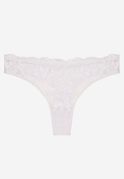 Białe Bawełniane Majtki Stringi z Koronką Ilwedana