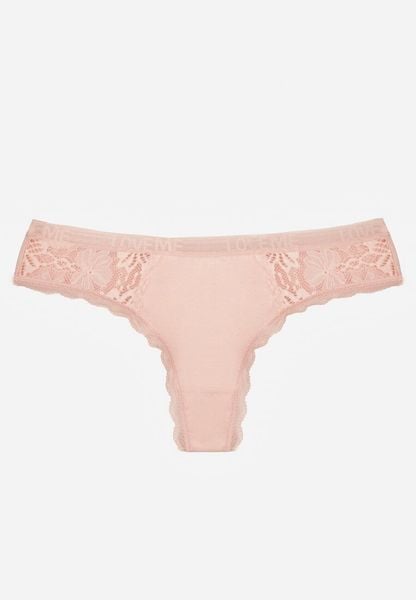 Jasnoróżowe Majtki Stringi Ozdobione Koronką z Bawełną Meniliphis