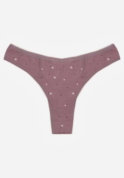 Fioletowe Majtki Stringi z Bawełną w Kwiaty Calylia