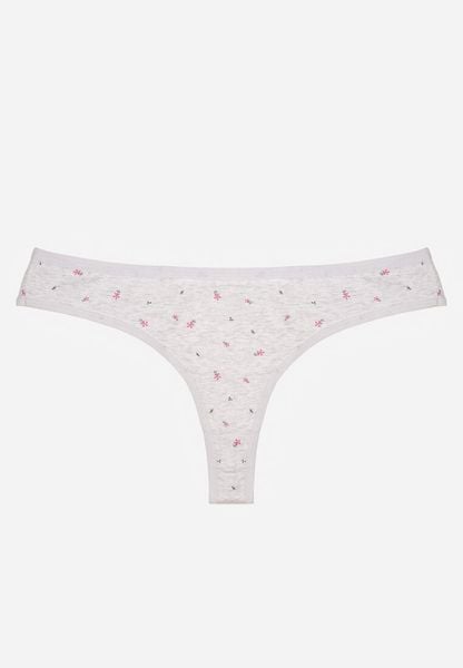 Jasnoszare Majtki Stringi z Bawełną w Kwiaty Calylia
