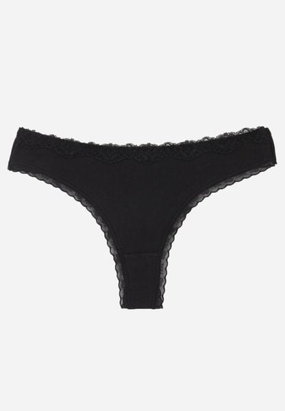 Czarne Majtki Stringi z Bawełną z Koronką Aethimilia