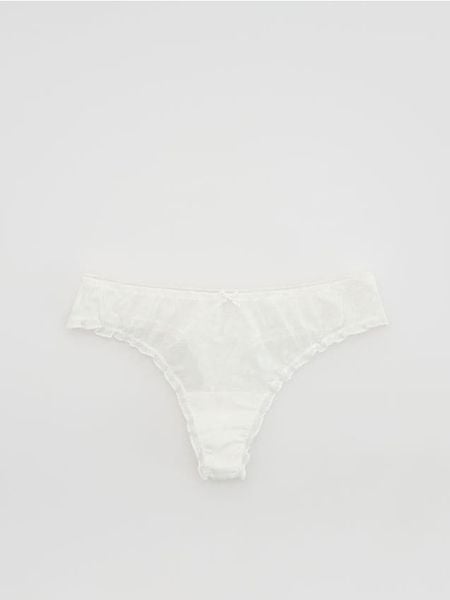 Majtki typu stringi z siateczki – złamana biel
