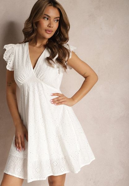 Biała Haftowana Sukienka Bawełniana o Rozkloszowanym Fasonie Laquita
