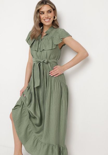 sukienki bez kołnierzyka zielone sukienki sukienki z falbankami sukienki mini sukienki born2be sukienki na spotkanie biznesowe odzież damska born2be sukienki maxi sukienki z krótkim rękawem sukienki bez ramiączek