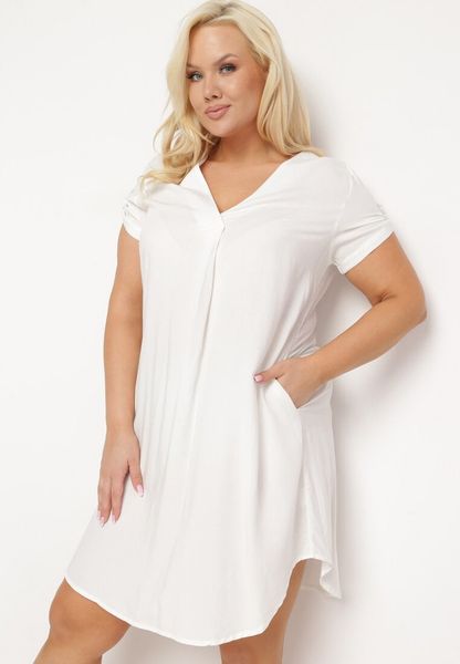 Biała Pudełkowa Sukienka z Nakładką przy Dekolcie z Wiskozy Moaneni