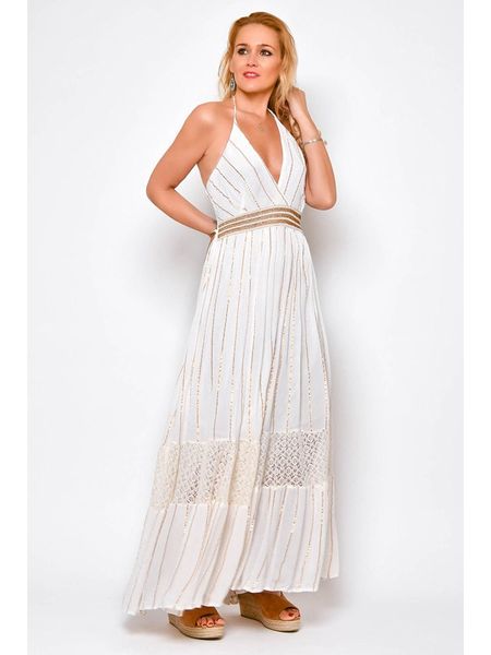 sukienki maxi odzież damska h.h.g. sukienki z falbankami sukienki h.h.g. sukienki z dekoltem na plecach sukienki ze sklepu limango.pl białe sukienki odzież damska limango.pl sukienki bez rękawów sukienki bez ramiączek